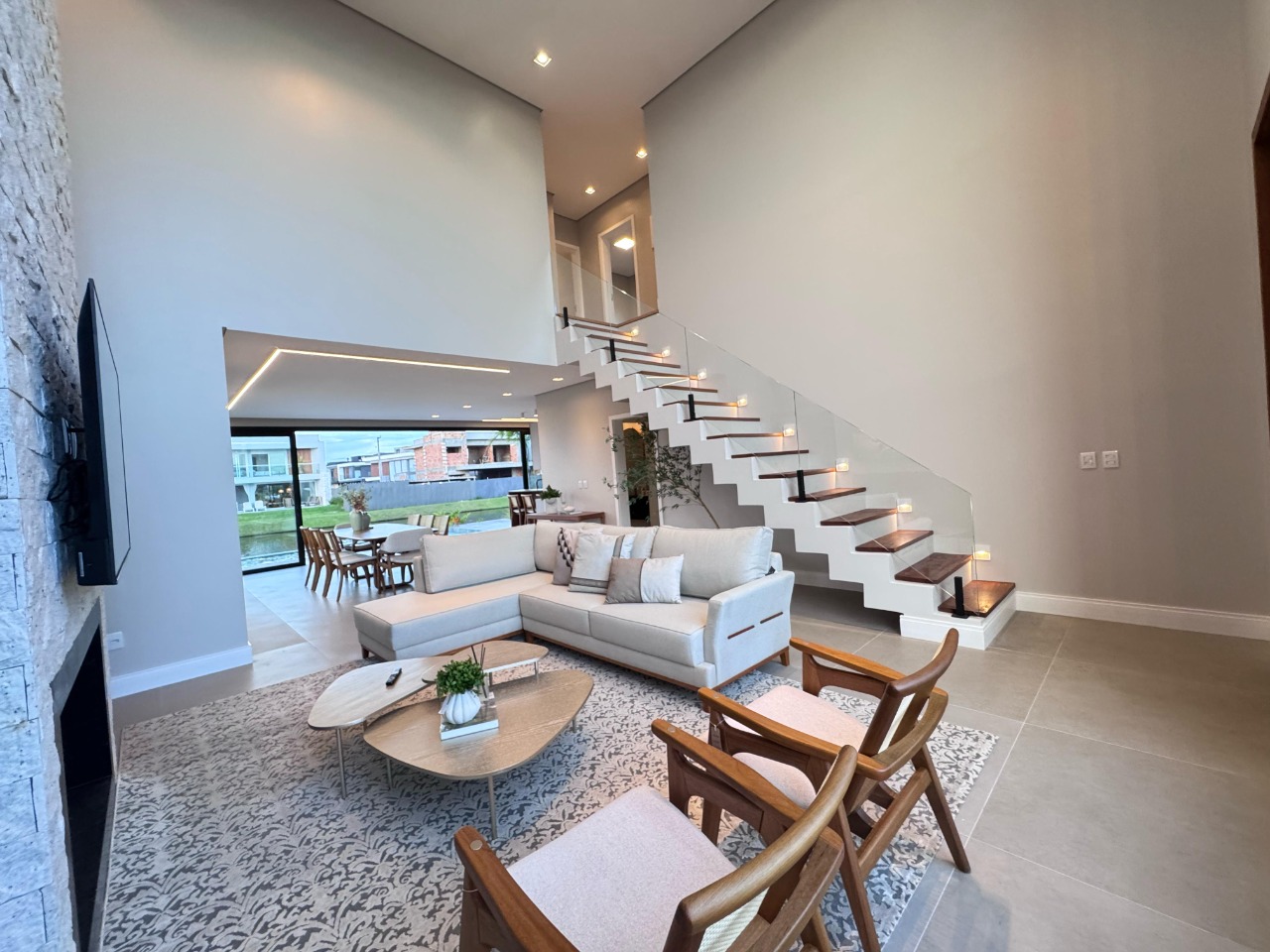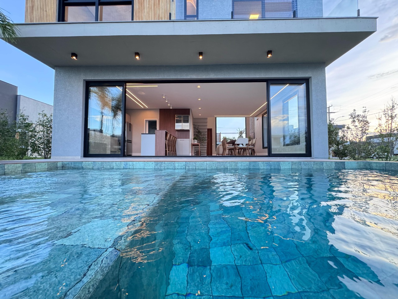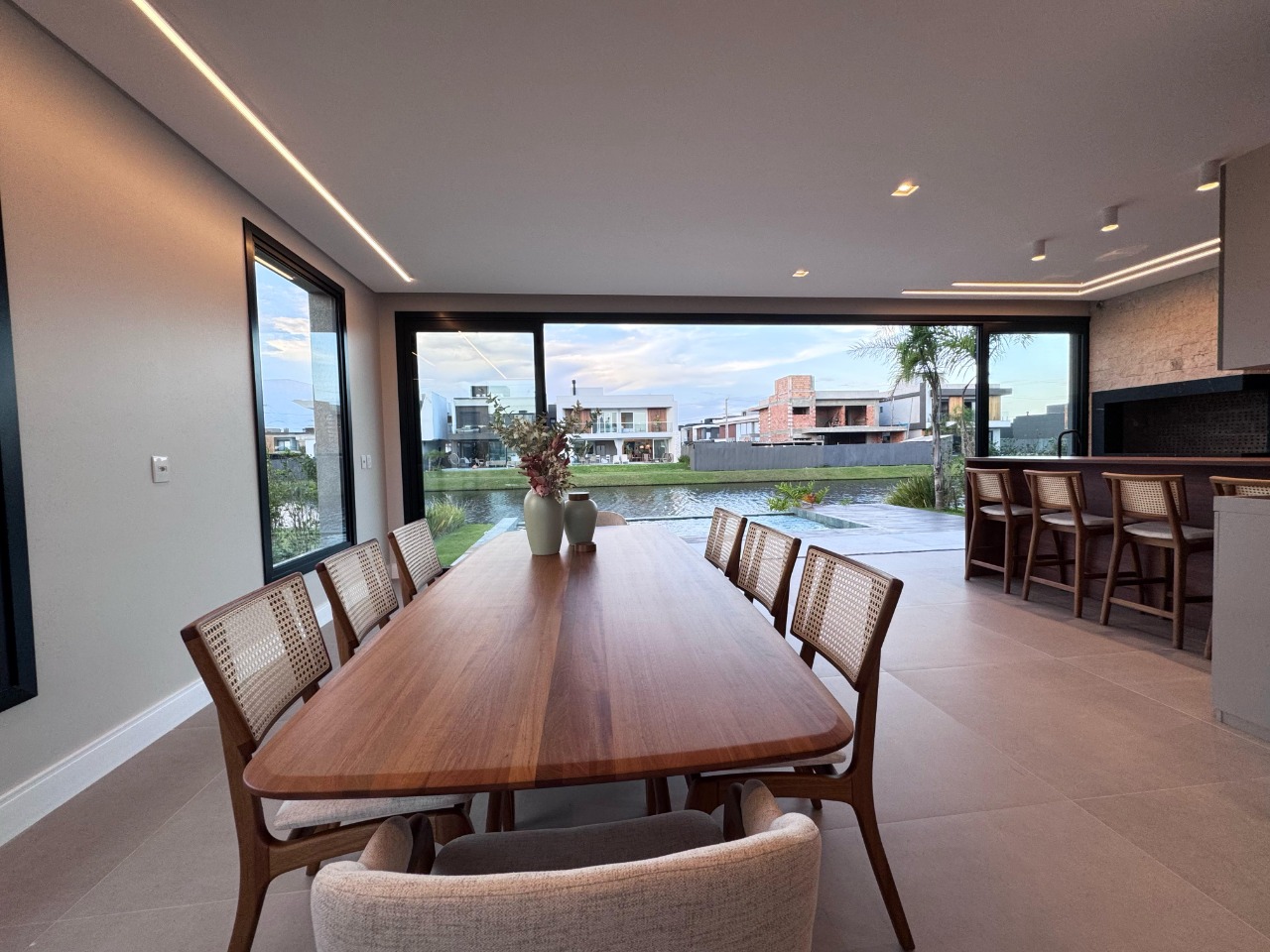 Imagine um moderno sobrado à beira do lago, situado no cobiçado condomínio Sunset, onde cada detalhe foi meticulosamente planejado para oferecer conforto e estilo. Este imóvel, mobiliado e decorado com um toque de sofisticação, apresenta cinco amplas suítes, incluindo uma conveniente suíte térrea. O living é um convite ao aconchego, integrado em dois ambientes e complementado por uma lareira charmosa, perfeita para as noites mais frias. A cozinha, em estilo americano, se abre para uma área gourmet integrada, criando um espaço ideal para entretenimento e gastronomia. Além disso, a propriedade conta com um depósito prático e um lavabo elegante. A área de lazer é um verdadeiro oásis, com uma piscina deslumbrante que oferece uma vista serena para o lago e é cercada por um paisagismo exuberante, que convida à contemplação e ao relaxamento. Com uma generosa vaga de garagem para carros, este sobrado é o epítome da vida moderna à beira do lago, combinando luxo e natureza em harmonia perfeita.