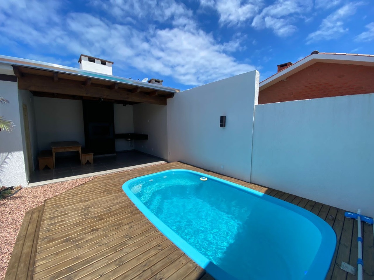 Se você está procurando um lugar para relaxar e aproveitar a natureza, essa é a casa ideal para você. Essa casa geminada fica na bela praia de Noiva do Mar, em Xangri-lá, uma praia tranquila e charmosa. A casa é toda mobiliada e tem 2 quartos, um banheiro social, uma sala integrada com a cozinha americana, e um quiosque nos fundos com churrasqueira e piscina com deck. O banheiro de apoio fica ao lado da piscina, para sua maior comodidade. A casa tem vaga de garagem para um carro e fica perto de tudo: supermercado, farmácia, padaria, restaurantes e lojas. Venha conhecer essa ótima oportunidade de morar ou investir na praia.