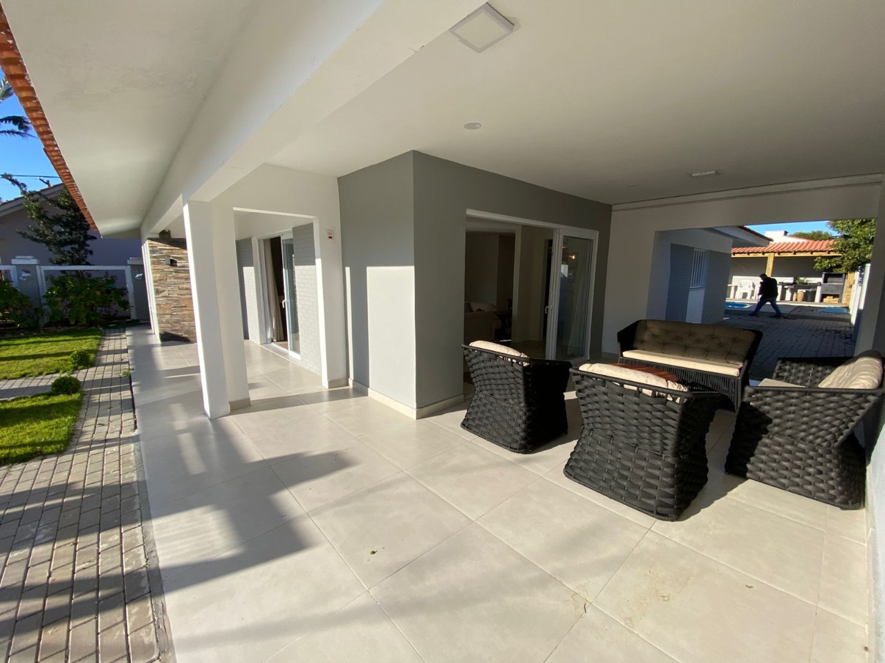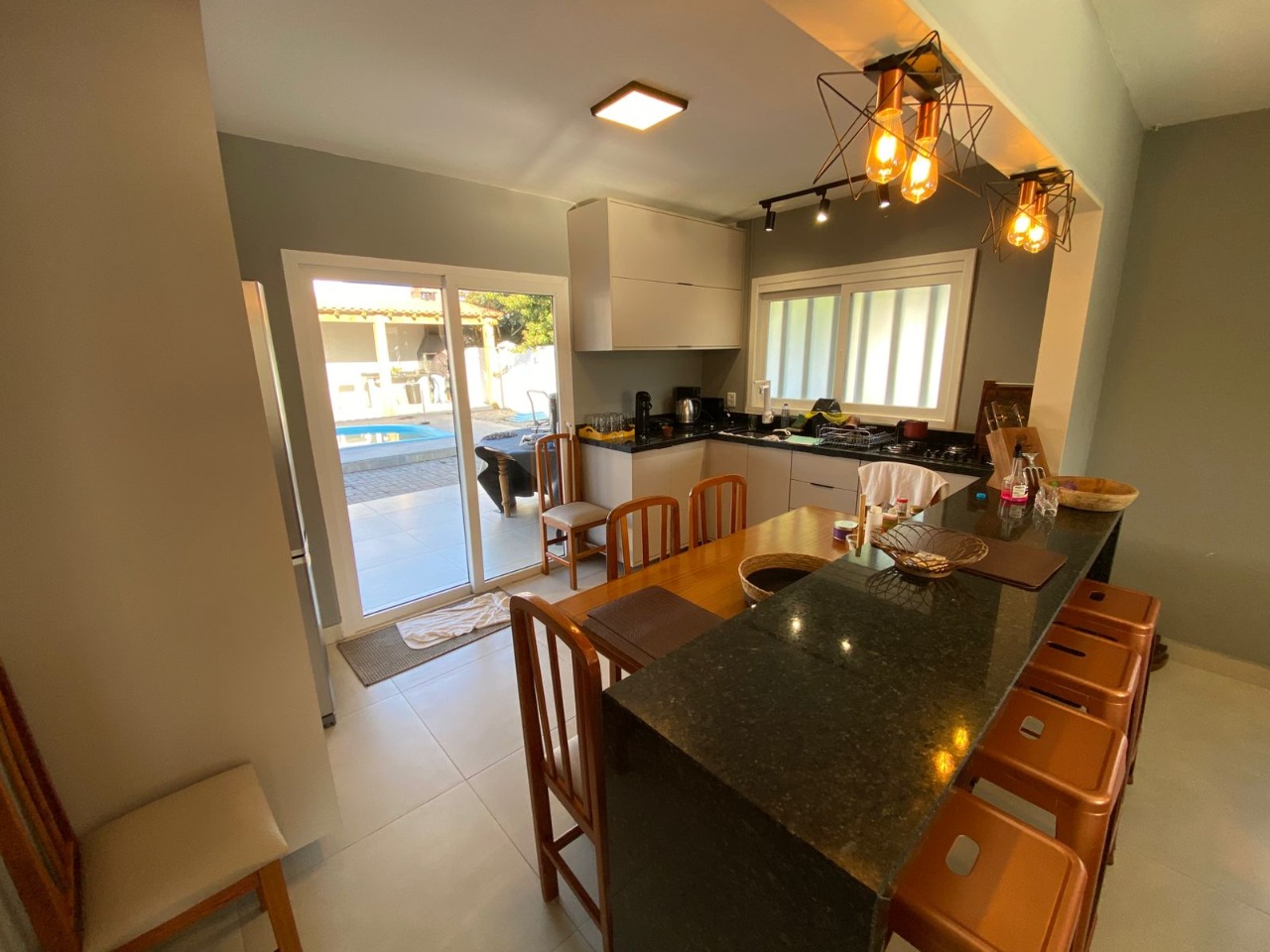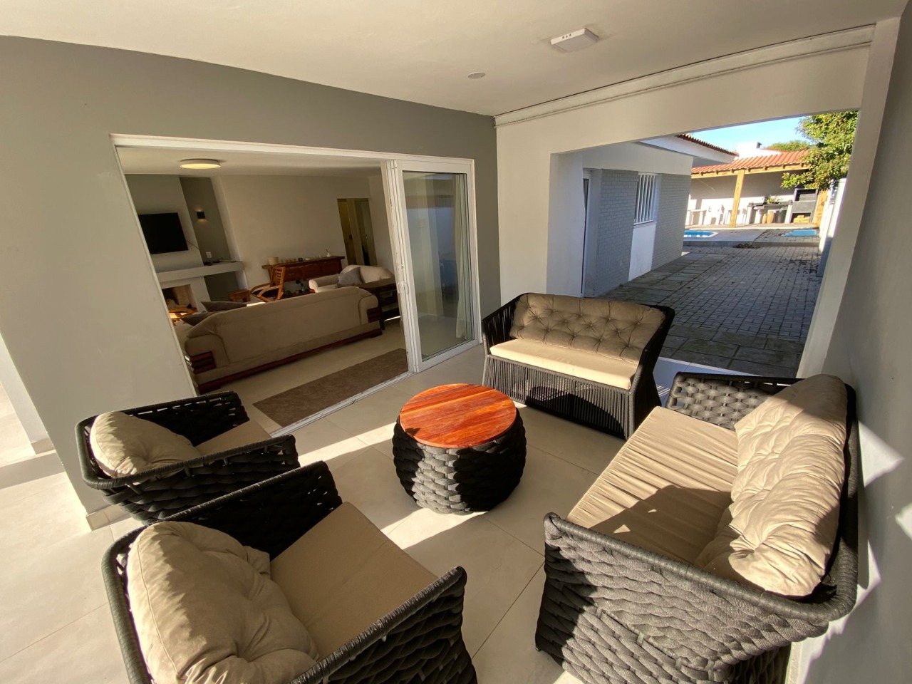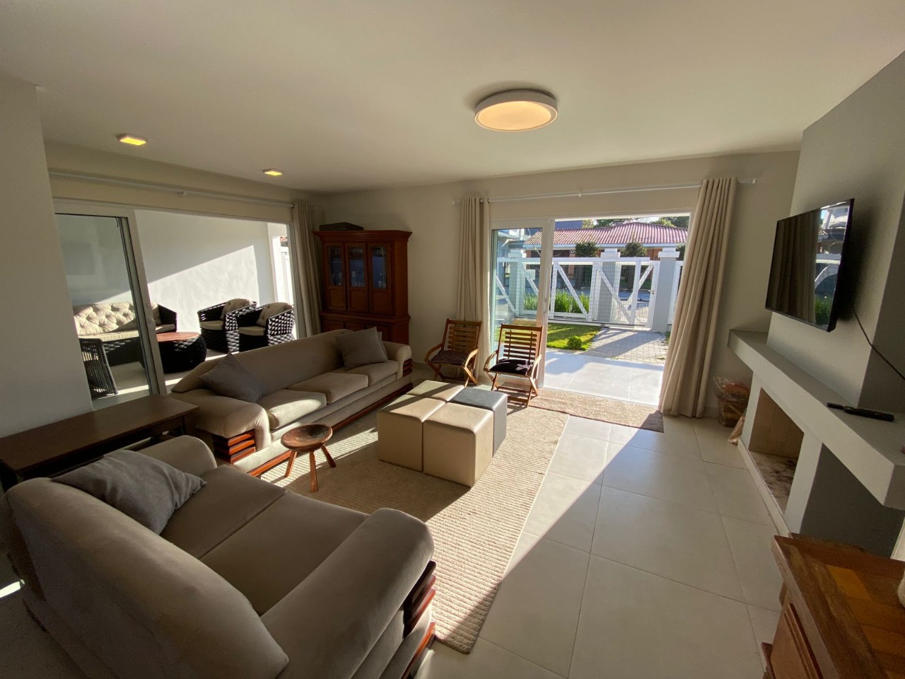 casa próxima ao mar, com uma bela distribuição, bem planejada com ambientes amplos e cômodos, composta por 3 dormitórios sendo 1 suíte, uma bela sala com lareira, sala de jantar, garagem fechada para 1 carro e mais 2 vagas descobertas, cozinha, piscina com cascata, quiosque com churrasqueira, mobiliada e dependência de empregada.