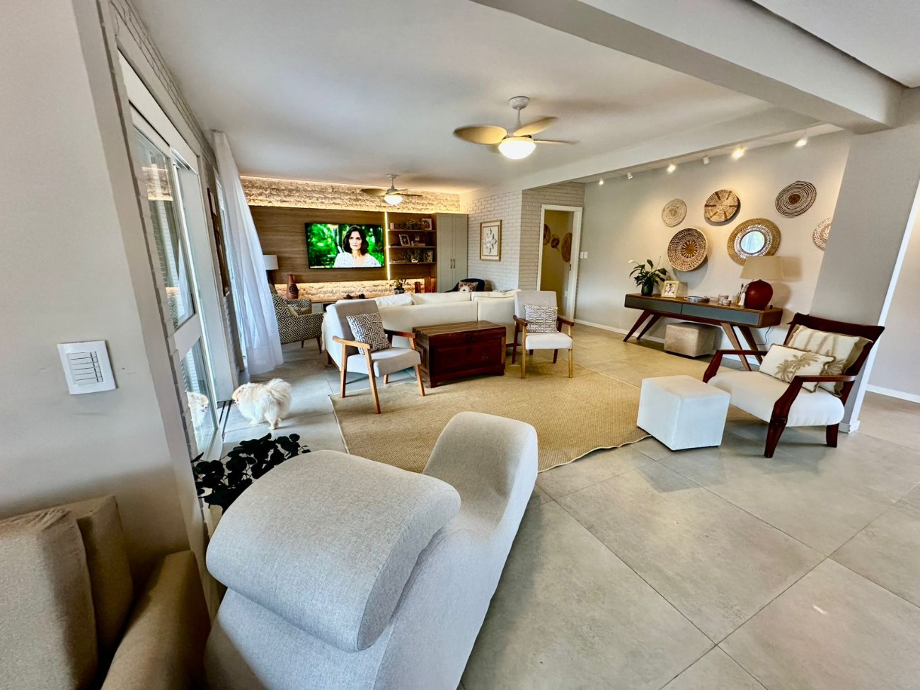 ??Living integrado com 03 ambientes e lareira;