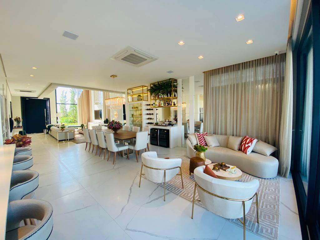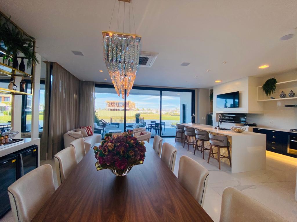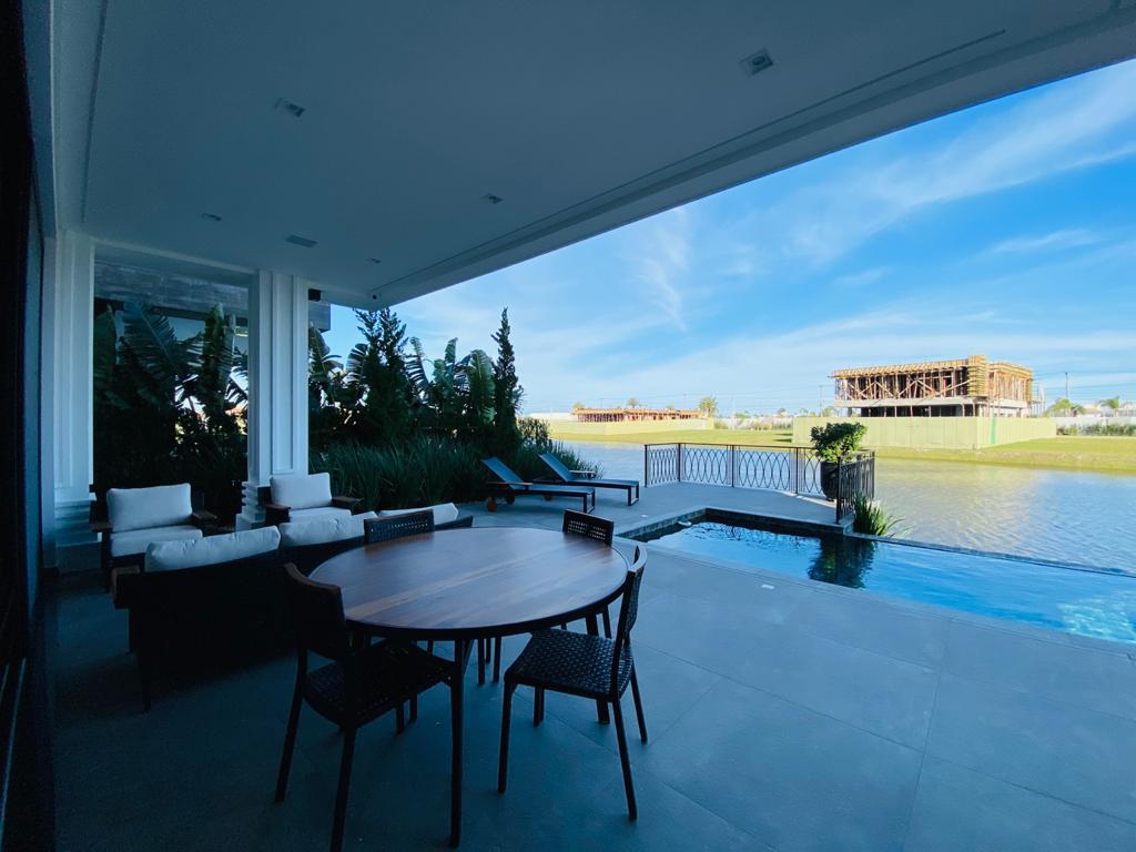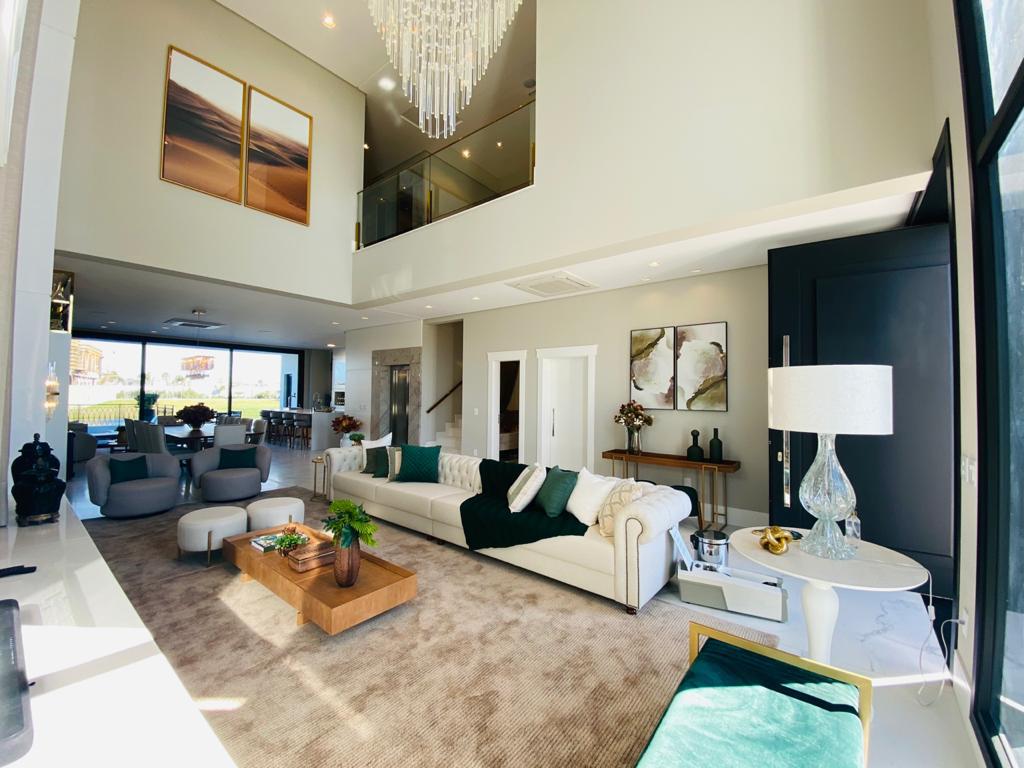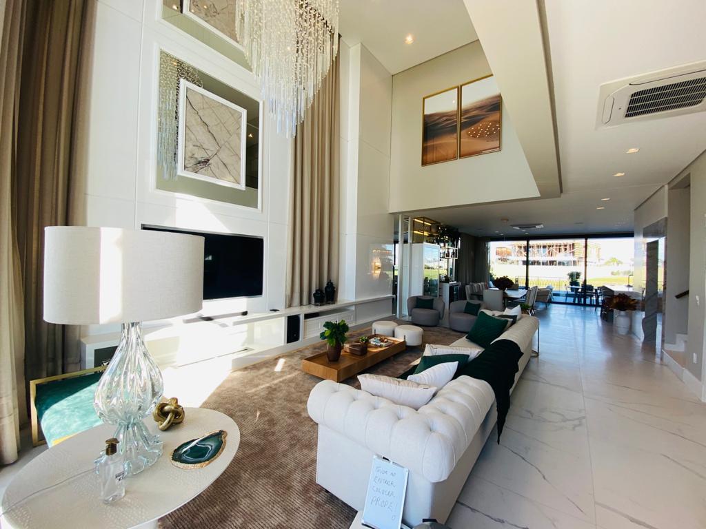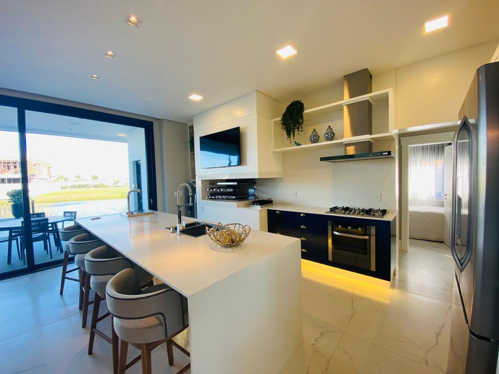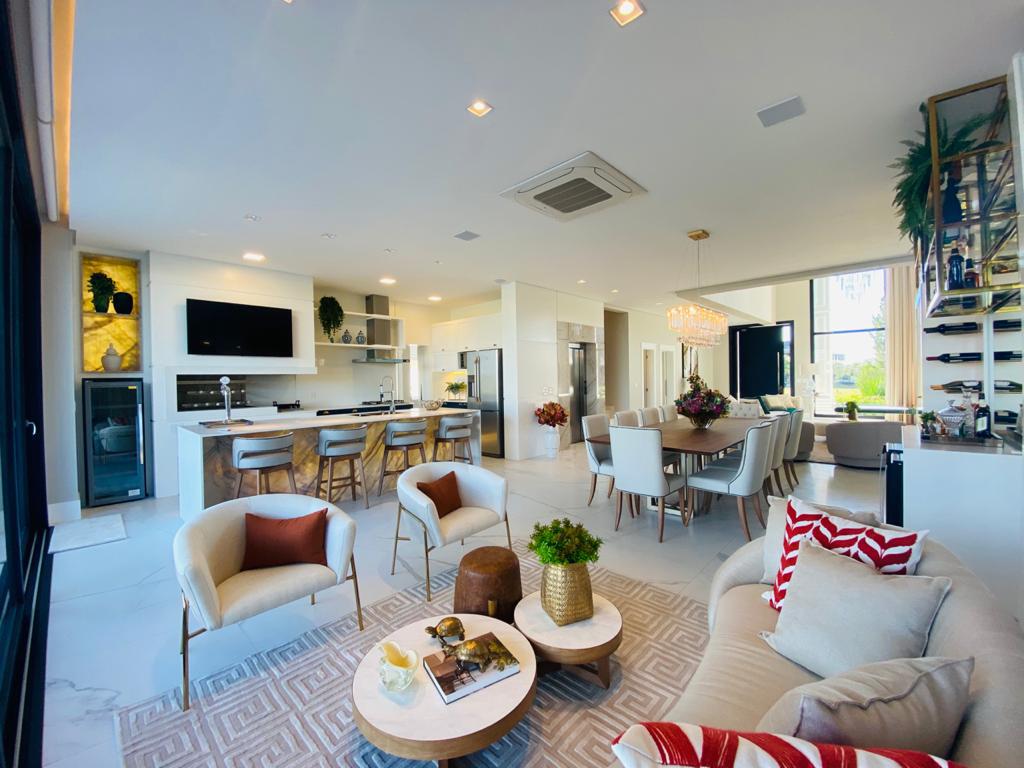 Elegante sobrado estilo neoclássico, finamente mobiliado e decorado, composto por 5 suítes, suite térrea com vista para o lago, amplo living, sala de jantar/estar, dependência de empregada e deposito, escritório, sala de cinema, piso aquecido, elevador, garagem fechada, 100% automatizada, som ambiente e câmera de segurança, piscina com aquecimento solar, borda infinita para o lago com deck suspenso.