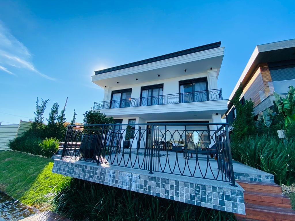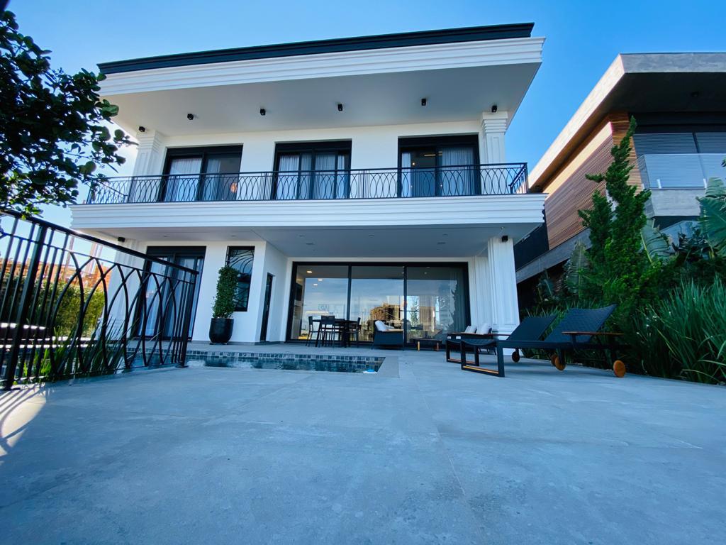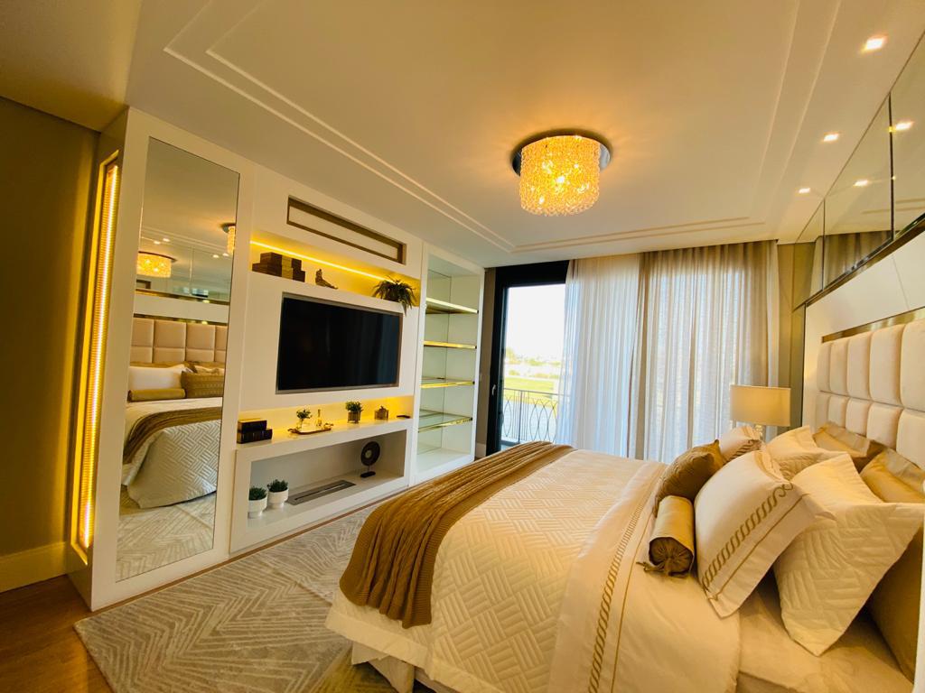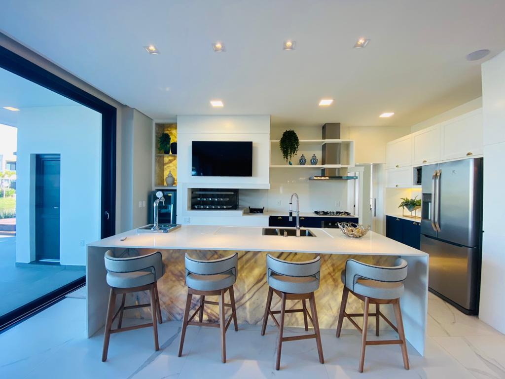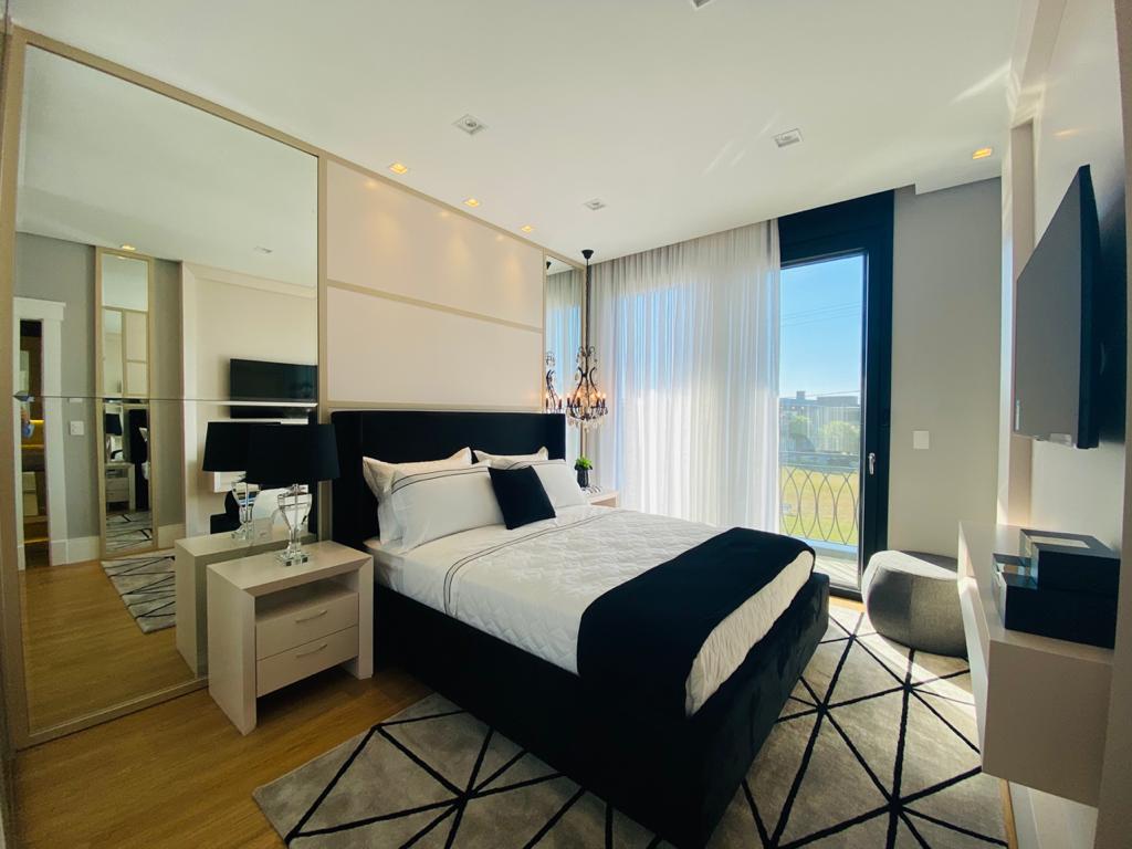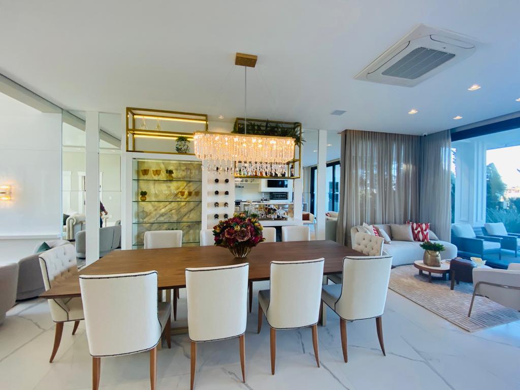 Elegante sobrado estilo neoclássico, finamente mobiliado e decorado, composto por 5 suítes, suite térrea com vista para o lago, amplo living, sala de jantar/estar, dependência de empregada e deposito, escritório, sala de cinema, piso aquecido, elevador, garagem fechada, 100% automatizada, som ambiente e câmera de segurança, piscina com aquecimento solar, borda infinita para o lago com deck suspenso.